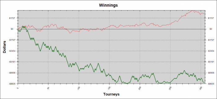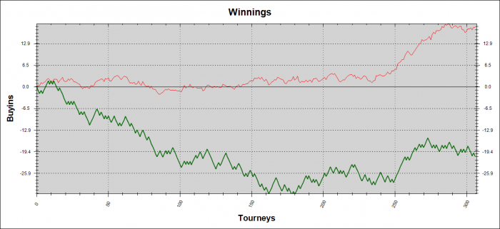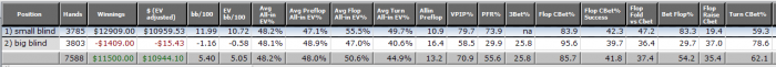 У тебя нормальный al-in EV на префлопе и флопе и низкий только на терне без позы( 40%). Так что я бы тут не особо обвинял ГСЧ, так как все логично и справидливо.