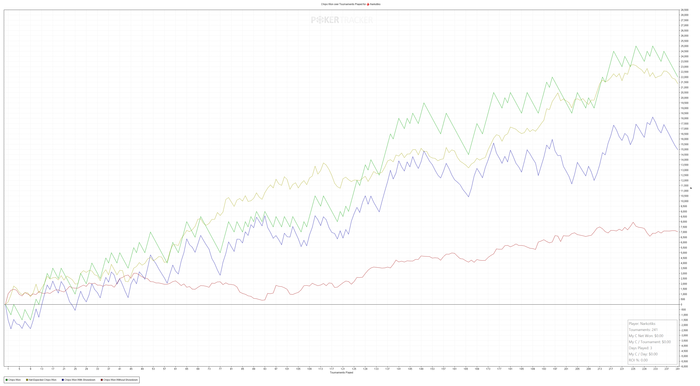 Постараюсь раз в 3-4 дня обновлять график с текущей ситуацией в отдельном посте. Также прошу учесть, что в связи с запуском нескольких столов одновременно, при подъеме по лимитам может возникнуть ситуация, когда у меня на счету уже больше переходной суммы, но еще играется турнир предыдущего лимита - он должен быть доигран. Главное, не регистрироваться в турнир с неправильным лимитом, видя определенную сумму на счету (это действует при переходе вверх; при спуске я всегда должен запускать столов ровно столько, чтоб в случае проигрыша не сыграть лишнего).