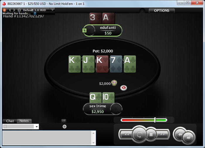 Full Tilt, $0.50 Buy-in (15/30 blinds) No Limit Hold'em Tournament, 2 Players