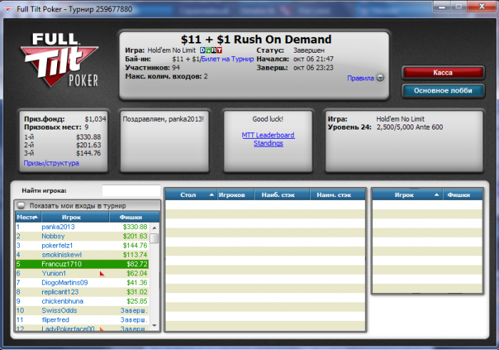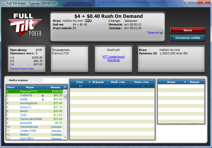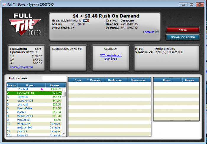 bagzik @ 8.10.2013 Hulk, по сколько турниров одновременно играешь? И сколько всего четверок можно сыграть, если грузиться с 19-00 до 21-30 по Москве?
