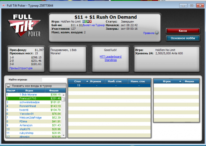 Блин, расстройство какое-то. В 3-максе было 160К против 50К и 30К, отрубился интернет! Быстро перескочил на другой компьютер, открыл а у меня уже 110К и тип, быстро пожирающий мои фишки. В итоге проебал флеш-дро с гатшотом. Противно.