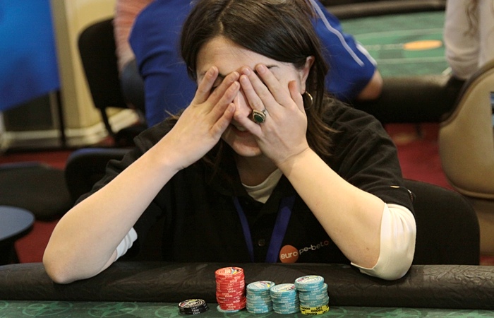 Вы думаете она плачет? Нет. Смеется? Тоже не угадали. Просто не верит, что вот сидит за этим столом уже шестой час, и до сих пор жива... Соперники по столу подбадривают ее, здесь против женщин никто жестко играть не хочет и не может. А она знай себе выигрывает фишки. Посмотрим, как далеко она доедет!