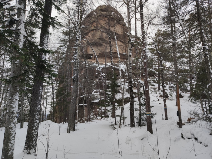 Прошло 3 часа. Тропинка была одна, но уже сильно припорошенная снегом. Назад не вариант - я же иду смотреть достопримечательности в виде скал, а не только лес. Ноги немного устали уже, но это от того, что давно не ходил так долго, а не потому что я пробираюсь по пересечённой местности уже хуеву тучу времени. Людей нет, потому что их просто сейчас нет, а не потому что я иду хуй знает где. Захотелось есть, ноги промокли, когда я подскальзывался и проваливалсяв сугроб по колено. В общем кайф.