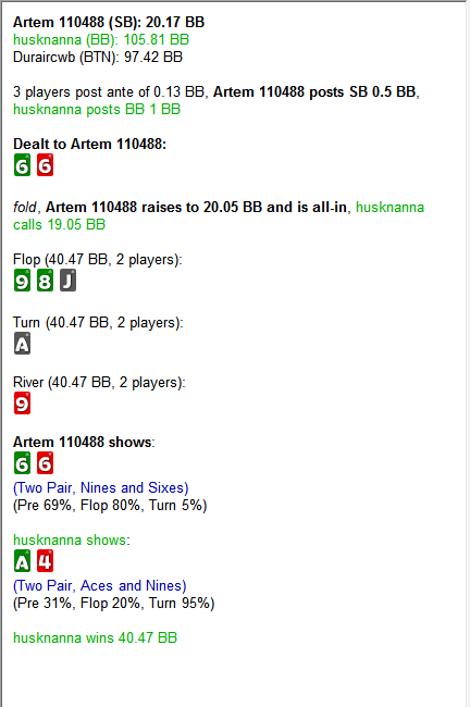 Бывают такие сессии, когда тебе кажется, что сегодня будет не твой день, когда сет в сеьт, сет в каре, натсфлеш в стритфлешь по 2 картам и тд, но главное в мтт, это я давно понял, продолжать грузиться, даже когда есть очень большое желание перестать и доиграть оставшиеся турниры. Сажал по ходу сессии 1200, в результате 800 плюсанул, последними туриками.