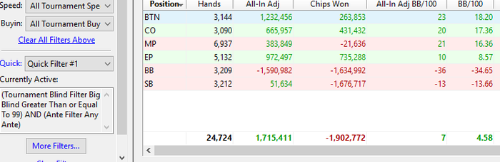 По отыгрышу ставлю себе крепкую 5, играю 50+ турниров за сессию, винрейты чуть не дотянул до планки. По деньгам - без комментариев.3-5 места - могила МТТшника.
