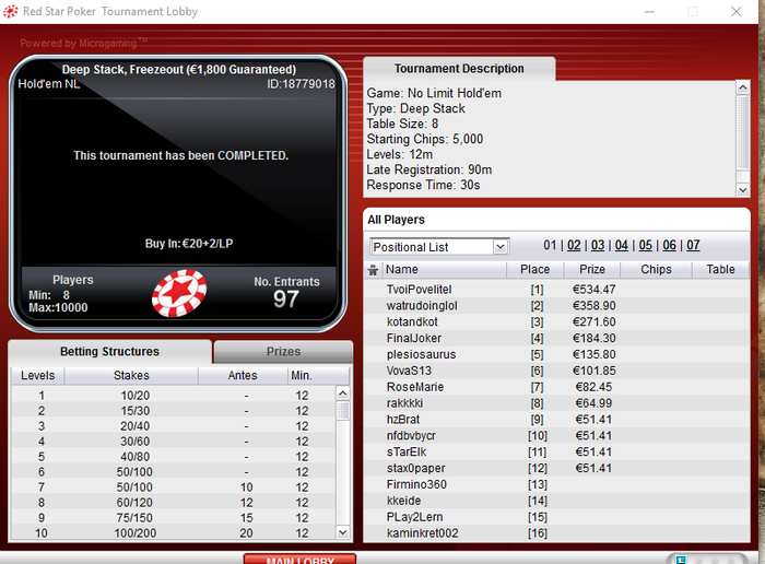 Вчера была хорошая сессия, 4 финалки, на пати против лака Норманолли ничего не смог сделать, а вот 888 разродились. Продолжаем ждать, когда старзы вернут награбленное!