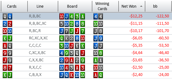 Ну тут правда они исправились на ривере, но все же PokerStars No-Limit Hold'em, $0.10 BB (5 handed) - PokerStars Converter Tool from http://www.flopturnriver.com