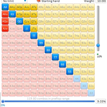 А вот сейчас обидно было. Специально пробил Хуанито по СХ....блин, ну в большинстве случаев нет такого 3бета у регов нл20, обычно 4-5%......но сука именно у этого за 10К раздач