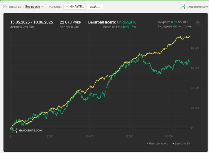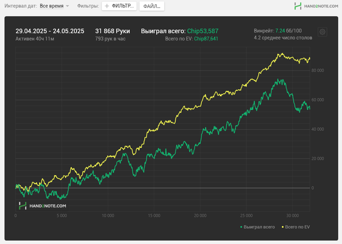 Год я терпел в фондах убрав все шабашки , чтобы расти в игре, да я вырос в МТТ, когда были стрики я получал 28к рублей в МЧС и жил, но на эти деньги можно прожить неделю +-. Я терпел. Я был с семьей. Они терпели. Спасибо Оле за это огромное. Последний стрик 5 мес. Я не вывез. Уже в ахуе был. Потом Костян помог. Вовремя. Спасибо тебе большое!. давал мне 500 баксов в мес безвоздмездно на поддержание штанов. И времени куча своего потратил и до сих пор тратит. Это длилось ровно год. Я терпел этот год. Семья терпела. Но в итоге я либо необучаем, либо чего то мне не хватает в спинах. В МТТ мы играем 1500-2000 раздач с экшеном в 30%. А там 8000 раздач в день я играю, где надо намного больше рук играть. Может поэтому. В общем я не знаю. Все это давит. Я не знаю сколько я зарабатываю. Нет никакой уверенности в завтрашнем дне ни у меня ни у семьи. Но сегодня Ваня с форума мне сказал фразу " Стабильность рушит мечту". Я не знаю что дальше ребята.