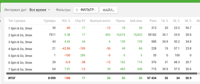 Спинов сыграно на Покерке 7556