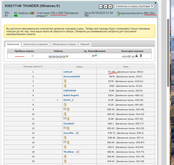 4) Иногда бывает такое, что один игрок выходит со стола, на его место садится другой, а статы по-прежнему на первого показывает.