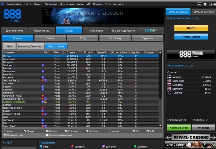 В лотосе ФЛ столы отличаются от общей сети 888, причем прошлый месяц было все отлично, но потом рыба пропала...видны только столы с регами-бамхантерами. Причем играл не высокие лимиты 3-6 и 5-10...если даже на данный момент глянуть главный рум 888 или витрину Lucky Ace, то видно что играют на столах 3-6 и 5-10, а в лотосе этого не видно... С чем это связано?