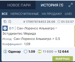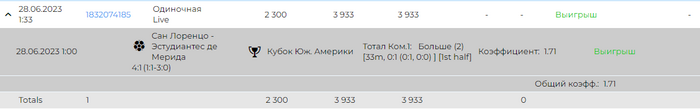 Сан лоренцо - мерида 4-1 , итого + 2 675 р