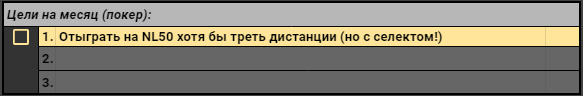 Я долго думал, как сформулировать цель, чтобы она была ориентиром на месяц. Решил остановиться на таком варианте. Я с радостью отыграл бы там и половину, вот только не уверен, что смогу столько себе населектить. А вот с третью особых проблем быть не должно