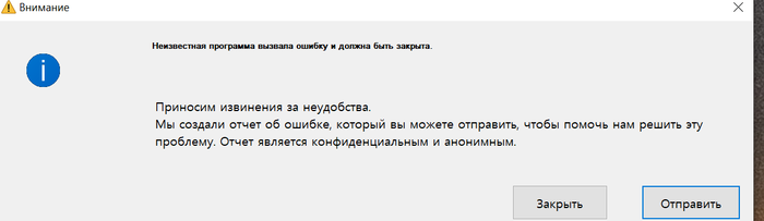 Кто-то сталкивался с постоянными вылетами клиента по причине "Неизвестная программа вызвала ошибку и должна быть закрыта"?