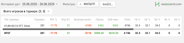 играют они огромное кол-во спинов в сутки, много столов одновременно -я так не могла, вообще один стол в моменте был + мтт ПС. Я думала что не вернутся игроки и займу 2-е точно -обломали!