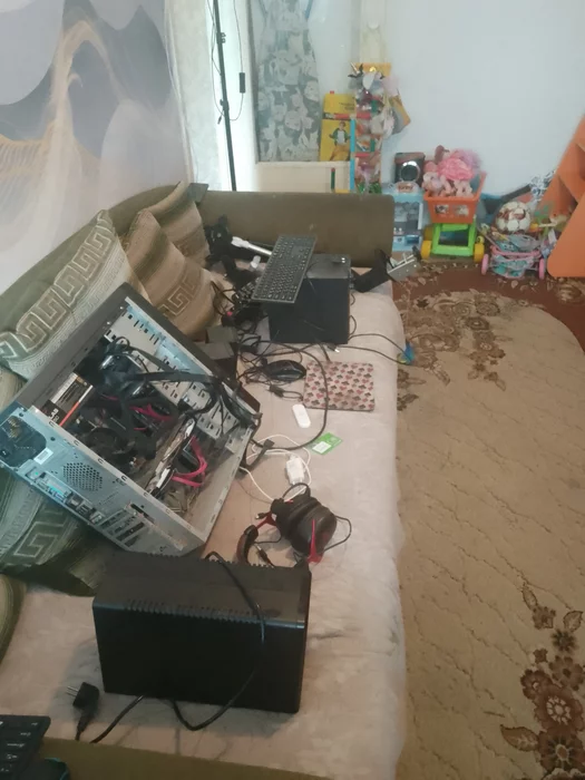 Разобрал рабочее место. Отвез в дом. Сегодня не получилось подключить все. Мои ездили на Сашину тренировку а полина с подружкой на детской площадке играли и она забыла там телефон. Обычно не берет его никогда, когда гулять собирается , там ни симки, соответственно ни интернета для мультфильмов. Ну поехали туда, объяснил охранникам ситуацию, впустили на территорию. Пошел, нашел телефон, привезли домой. Комп у Оли не работает, а телека у нас лет 10 нет, все через комп. Разбирался с ним, провода к кнопке включения отошли.Починил Теперь запускается и кулер крутил и видюха, а изображения нет. Ну лан, это не особо важно, с этим разберемся😊