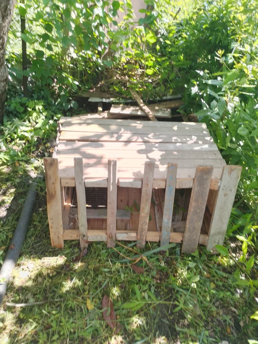 Разобрал старую клетку для кроликов, и что то вроде будки собачьей, там мешки какие то старые из мешковинв с латками были и пленка.