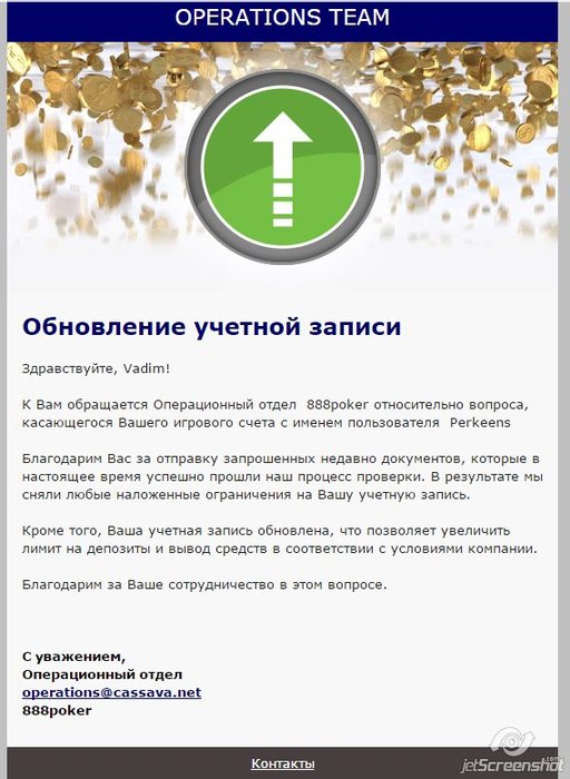 Опа! Я неожиданно отыграл бонус. Пока отыгрывал бонус 42$ Прилипло плюсом 600$. Оказалось реально не фантики. Появились в покере и можно вывести. Отыгрывать тяжко конечно, особенно в рулетку, но как оказалось возможно. Одно пожелание для представителей рума 888. Сделайте, пожалуйста, полосу, где видно, в какой стадии находится отыгрыш бонуса. В покере же есть такая возможность, почему в казино нет, мне не понятно? Всем спасибо! Выигрыш есть - можно поесть!