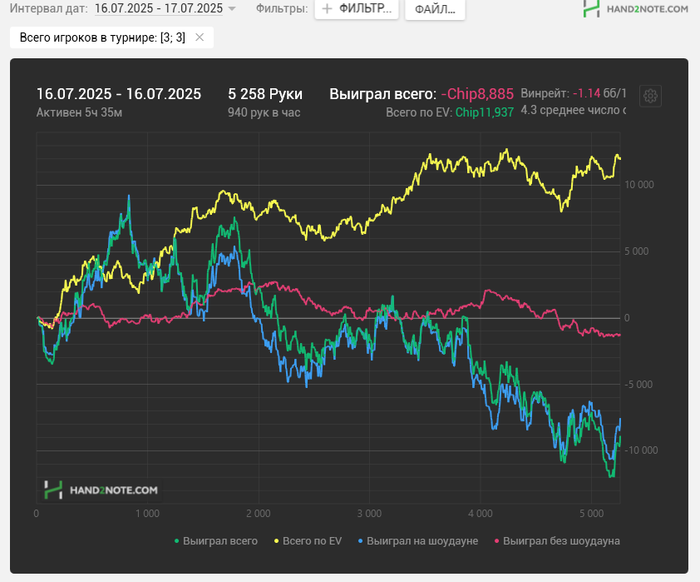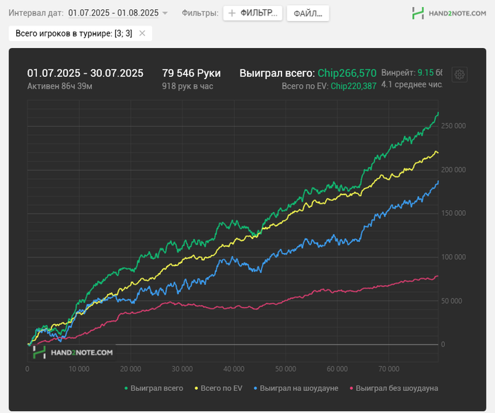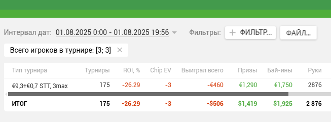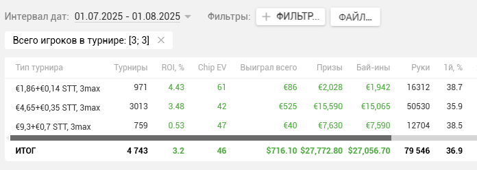За месяц отыграл 4700 турниров. играл двойки, потом пятерки, потом шотнул десятки вышло так. Ну и рейкбек наверное баксов 200 +-. рои 3 вышел.