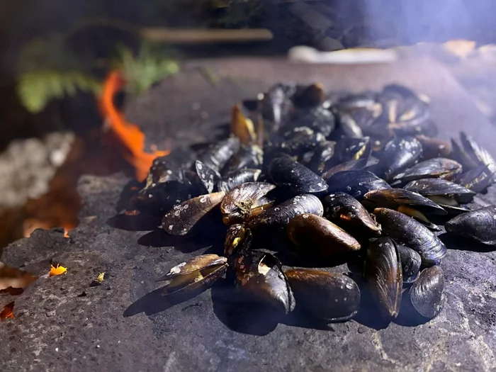 Потом разделил по пакетам, отвез родственникам пакет, пакет соседям, пакет другу завез и себе оставил пожарить. вечером костерчик развели, кусок металла нашел, на кирпичи поставил, пожарли-поели. очень вкусно.