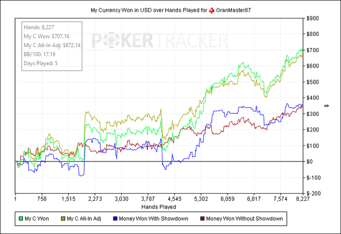 Ошибок на 754$-23 переигрывания, 9 блефов, 12 плохих коллов.