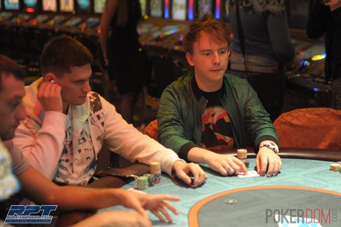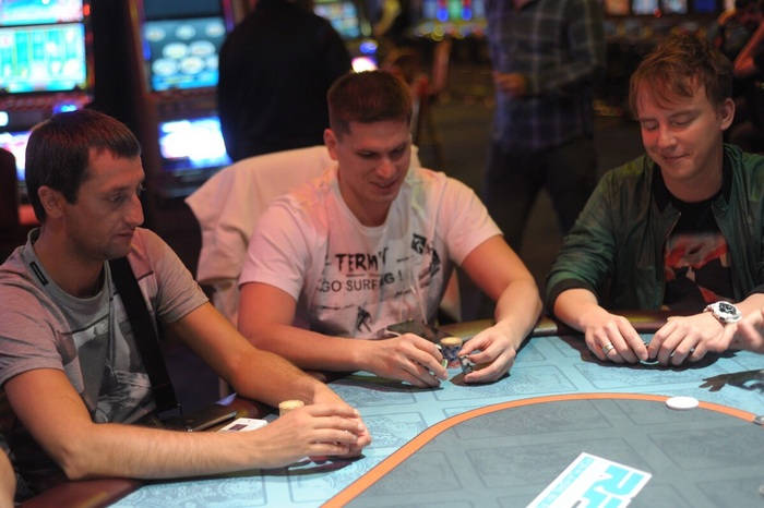 Погода сегодня не радует,идет дождик,так что сегодня моя экскурсия по Минску отменяется,лучше высплюсь перед вечерним турниром)Тем самом временем,вовсю идет GRAND EVENT:cool:Первым делится новостями Тема.Блайнды 75-150,Рейз 400 из утг, у нас вв, мы 1000, рейзер 2600, мы колл флоп 8T9, он 1800, мы колл, терн 7, он чек , мы 5 он колл, Ривером спарилась 7 он оллин 15 к,мы кол,там QQ