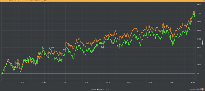 2Alexz1z На графике после ~2700 рук красная с синей определились и поползли в обычном направлении. До этого момента видно, что wtsd пониже был, игра агрессивней была. Сам как думаешь, чего не хватило так продолжить катать и дальше? По графу видно, что раздавали вроде не плохо.