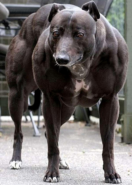То же самое относится и ко всему остальному. И к шее жирафа, и к длине хвоста павиана. Только регулирующее вещество в данном случае ограничивает не производство пигмента, а допустим производство костной или мышечной ткани. Вот так вот например выглядят собаки, у которых ученые отключили гены, отвечающие за остановку производства мышечной массы.