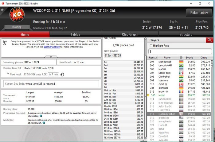 (18 ссесий,675 турниров)Выпала целая неделя из за ссоры с женой, и в итоге сыграл