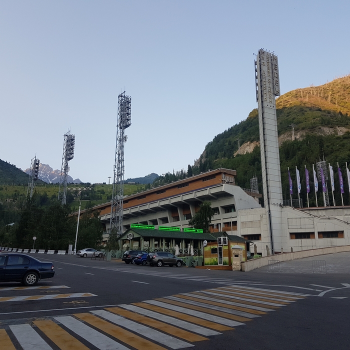 Медео, выше виднеется плотина, солнце начинает угрожающе подсвечивать вершины горок, пора валить: