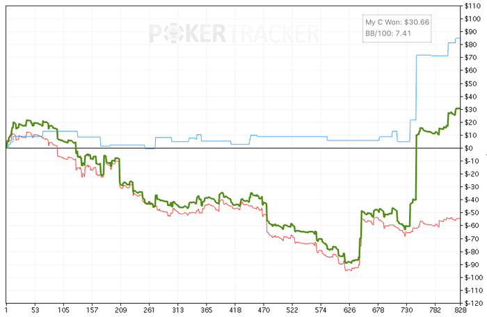 - покер: в принципе размялся, 6-7 столов играются вполне себе вдумчиво, даже катапультироваться со столов стал реже (кстати, на моих графиках винрейт завышен примерно на 1.5бб/100 из-за выпрыгиваний посреди гадких раздач). Цель минимум - организоваться к осени, т.е. укрепить БР и задисциплинироваться на 6+ часов собранной катки в день;