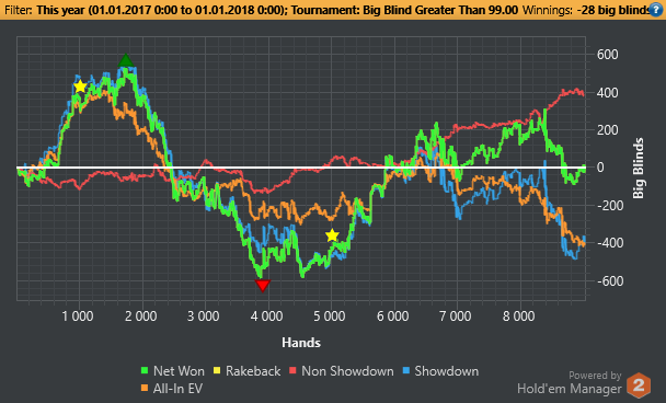 Скажу, что по большому счету это не стрик-это реально плохая игра если анализировать все что было последние 2 месяца, то это точно не самый правильный подход к игре катка в состоянии не то что Б гейм, а даже наверное С или Д. Плохая подготовка и настрой на рабочую сессию катка без остановки , слабая работа с теорией и прочие прелести. Все эти вещи складываются в одно неприятное итоговое событие тильт и конечно потеря времени и БР. Как итог для восстановления БР пришлось вспомнить, что такое SNG 45/90/180 max reg speed и турниры за 1-2-3 $ Да да да abi пришлось снизить до 4$ убрать верх загрузки и тупо "пилите Шура пилите". В ближайшее время планирую несколько занятий с тренером. Конечно думаю до конца месяца ABi придется сохранить не выше 5 $, чтобы восстановить БР ,и сделать подушку от просадки , думаю 350-400 БИ будет достаточно.