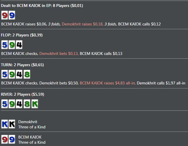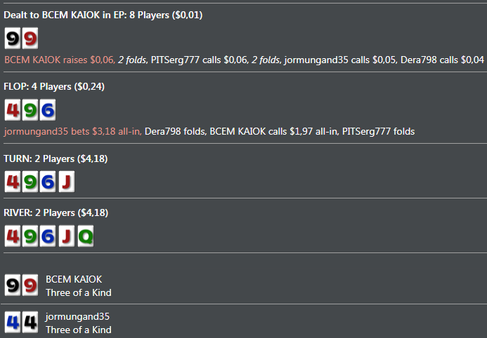 ну и сам стек подарил косоглазому корейцу разок, ну хуй знает, сет так не разыгрывают, а в такой допер хуй поверишь, поймал пиздюк свои два процента, да и подавись