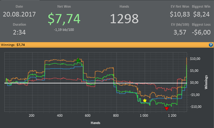 как начал зум катать, трижды подряд насыпали, я уж решил изимани..... хуй там ночевал, второй раз ебет в противоположенную сторону. ну его пожалуй вписту. 500 рук зум пятерок, психанул само собой, грузанул десятки обычные, 7 БИ есть же, отдало, вообще, блядь, сеты не читают, что там за рыба на нл10 плещется, ну мне всяко не по банкроллу проверять, это только в тильте я на такие вершины одним глазком заглядываю. как же заибали эти качели.