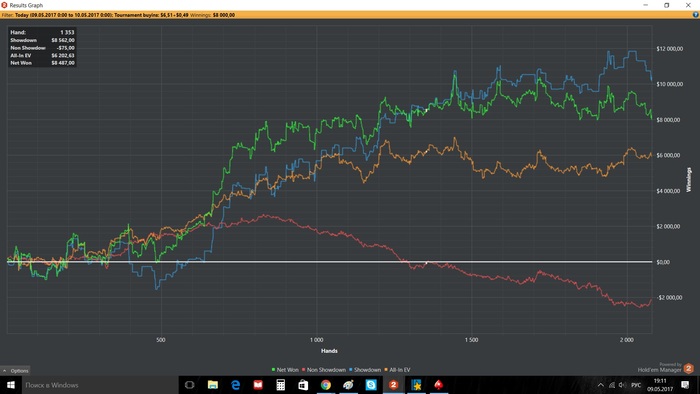 Не секрет, на работе у меня оклад, 34 000р., 13-ая зп, и премии с Сентября от 5 до 10 тысяч, под конец 2016 года дали премию 30 000р. Так что покер пока далек от такого заработка.