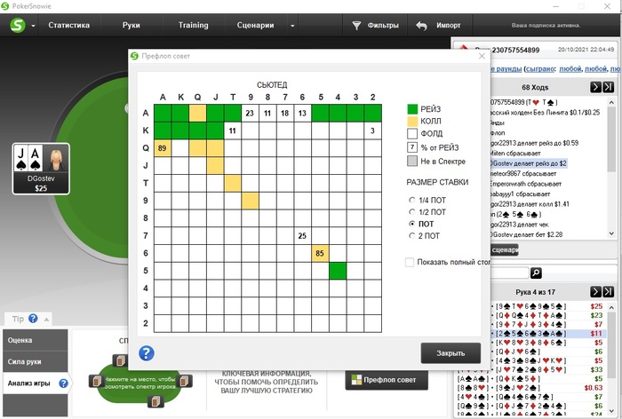 Также наткнулся на прогу Poker IQ и с ее помощью заучиваю префлоп, а то у меня открытие еще куда ни шло, а трибеты и реакция на них чуть ли не по чуйке.