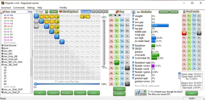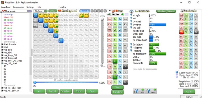 Я сейчас немного другой диапазон задал чем первоначально и получилось 37,57 эквити руки.