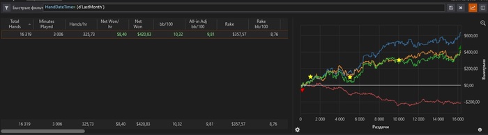 NL 25 встретил меня не ласково и я уже думал, что придется вернуться на червонец, так как вплотную приблизился к Стоп-лоссу, но обошлось. Ничего расписывать не буду. Результатом я доволен. Задача была не слететь с NL25. Вот что вышло.