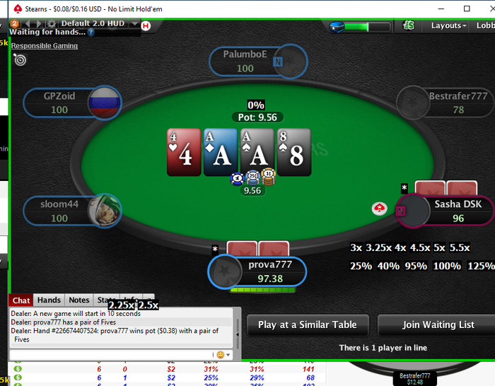 Такой вопрос к регам, кто катает нл16-25, вы когда-нибудь видели Sasha DSK вне позы от фиша? Или хотя бы +1 место от фиша. Катал сегодня, смотрю садится фиш, больше никого нету за столом, я не успел даже пошевелить мышкой, как он инста появляется в позе на фиша. Как думаете, может это быть какой-то скрипт?