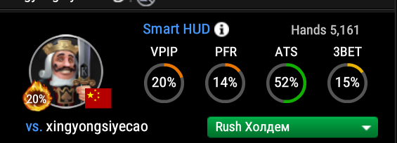 Но я думаю, что они не просто тупо вместе катают из какого-нибудь офиса, а используют RTA или что-то типа того. Очень много овербетов. Буквально в каждой второй раздаче. В одной раздаче я получил овербет в 3 банка на терне после чек-чек флопа. Я посмотрел в своей базе и нашел больше 1000 подобных ситуация в раше. И знаете в скольких случаях игрался овербет хотя бы 2х на терне? Ноль. Но солвер так играет иногда. Было ещё несколько мувов, которые редко увидишь от людей, но которые в стиле ГТО (большой чек-рейз с третьей парой на флопе и дальше чек-чек терн и ривер, контбет в 150% банка с 77 на флопе с AQ4, контбет в треть пота на А-хай доске и овербет на терне с фд и чек-чек на ривере по не доехавшему дро). Понятно, что такие мувы можно увидеть в исполнении регуляров, но чтоб буквально за несколько раздач от разных китайских регов, да к тому же очевидно связанных между собой. На самом деле это пример из очень маленькой выборки. Я с ними наиграл ну может несколько десятков раздач, в большинстве из которых дело не доходило до флопа. Ну и отсутствие автофолда и задержку при принятии решений даже в простых спотах можно объяснить особенностью софта, который они используют. Может он не понимает, что началась новая раздача, если физически не нажата кнопка фолд. Это уже догадки, но, мне кажется, что все ясно и так. Ждем ответ от службы безопасности.