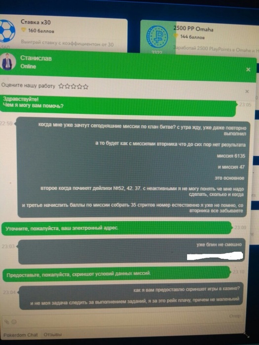 Если вы обнаружили вышеописанные ситуации, просьба обратиться на наш почтовый адрес – security@pokerdom.com с полным описанием нарушения: