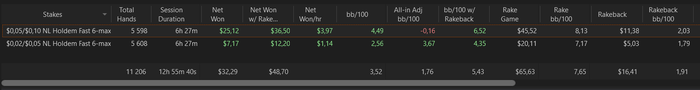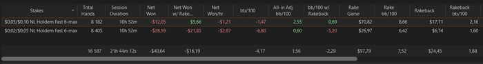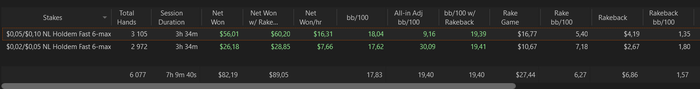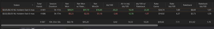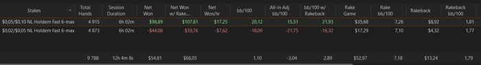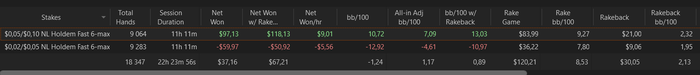 По мне как дисциплина больше решает и исключение вредных привычек.(сам работаю над этим).Судя по отчётам у тебя с этим всё впорядке.При 8 столах зум игра скатывается больше на автопилот.Тяжело играя каждый день по 8ч ясность ума и концетрацию держать.А так ты топ на микро по соотношению дистанции и результату)