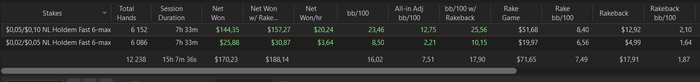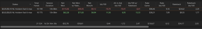 За полтора часа получилось хорошо заработать — в основном на лимите NL10, где чувствую себя уверенно. NL5 тоже порадовал стабильным плюсом.