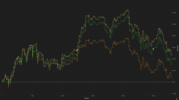График сессии — это зеркало моей концентрации. Взлёты — когда был собран, падения — когда терял фокус. Основа успеха — не удача, а умение сохранять ясность ума вопреки всему.