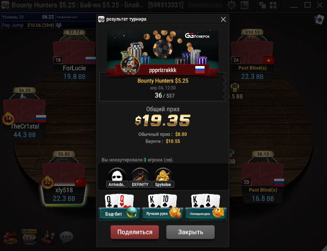 Всем привет. Началась череда сплошных предфиналок, не удается пробиться на финальный стол. Ну ничего. Где наше не пропадало Сессия 170. День 10,73$. Бр 5989,77$