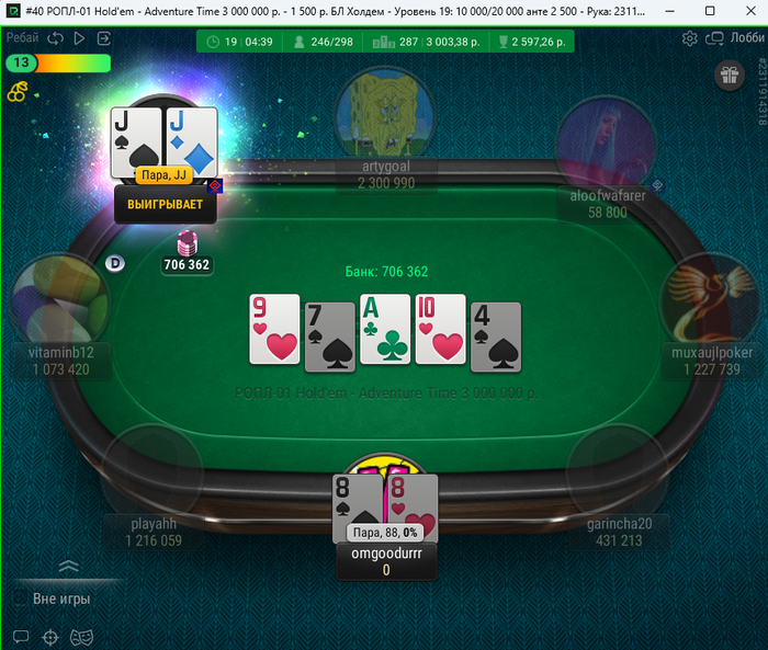 увы ропл 4 мимо кассы... ва банк до флопа