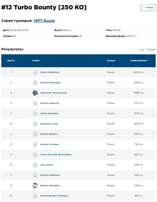 Доска - . Максим Секретарев стал чемпионом WPT Russia, у Андрея Волкова второе место!