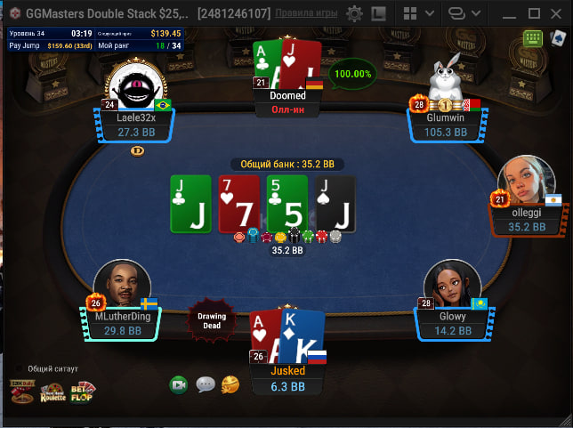 Ну и та самая раздача за чиплидерский стек из оставшихся 142 человек