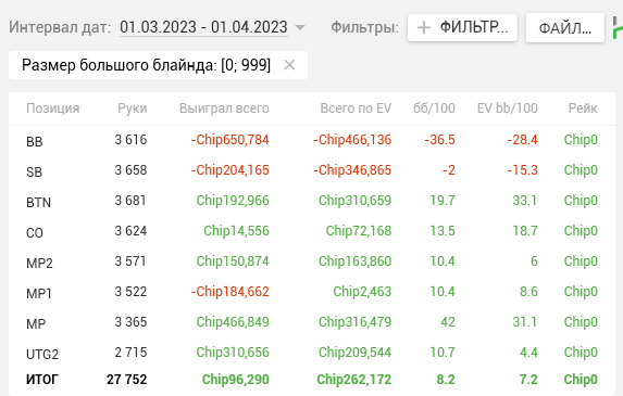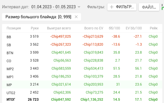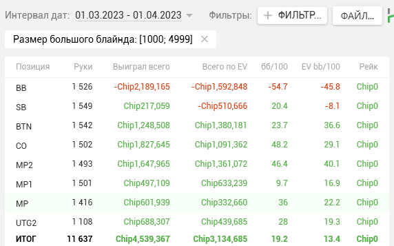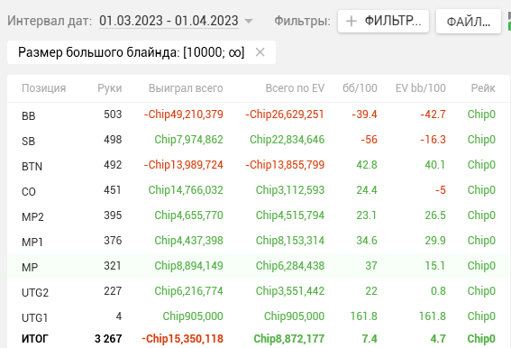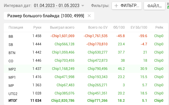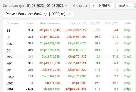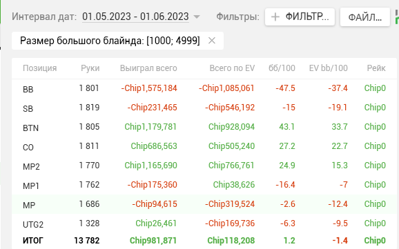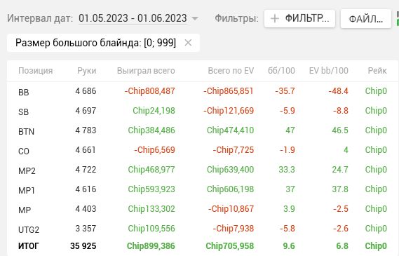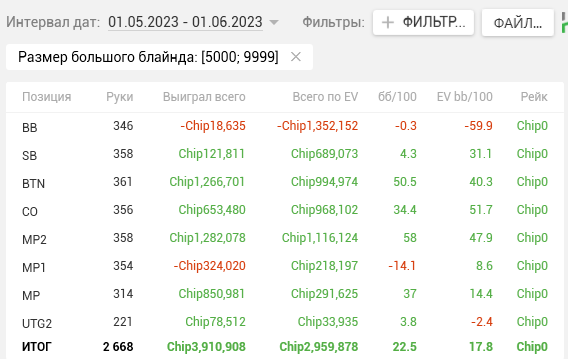 Тогда же в дневнике я написал, что перестаю гнаться за профитом и ставлю цель добиться Ev bb/100 > 15. Продублирую ЕВху еще раз, для тех кто не читал тот пост.